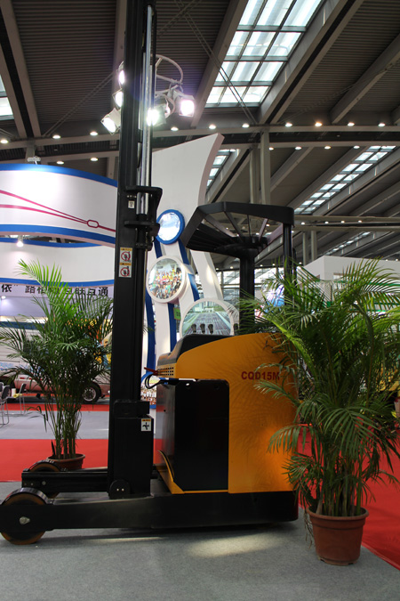 另一款拥有无污染、低噪音、低振动、全景显示的人性化设计的CQD15M(座驾式)前移式电动叉车,为了更有效的利用仓库面积,在设计时更注重提高空间利用率,具有转弯半径小,转向灵活轻便的特点,同时可实现4排货架的存放。