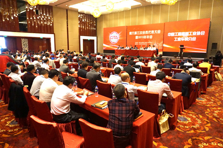 应中国工程机械协会工业车辆分会邀请,日前,安徽合力张德进董事长出席在江苏无锡举办的中国工业车辆分会六届三次会员代表大会暨2015年会并作主题演讲。中国工程机械工业协会副会长兼秘书长苏子孟,国家工信部运行监测协调局副局长景晓波,工业车辆分会会长陆大明、秘书长张洁等领导、专家、媒体代表共165人参会。