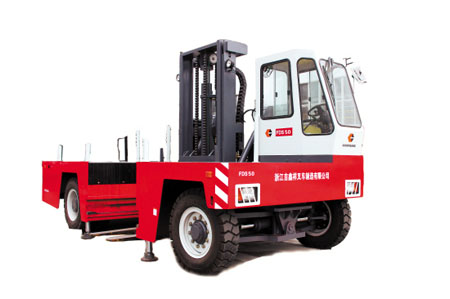 在机动性能方面,这款侧叉表现出色,底盘扎实可靠,能过较大的坑道,动力强劲,能爬20%的坡道。此车虽大,但运动灵活,在合适的空间内,能实现高效的运输;使用转向助力并配上高性能转向器,转向虚位少,转向灵敏度高,车子使用起来方便灵活,大大减少操作者的工作强度。