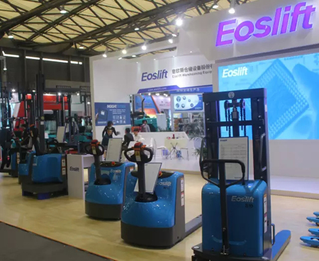 本次展会中搬运产品的重头戏为意欧斯自主研发的电动搬运车G27/36,并专门为此设立了人机互动专区,有专业人员进行现场讲解。该款车辆带有行车电脑,可调整车辆的参数以灵活运用于不同的作业环境,也可对车辆进行自检及驾驶员身份验证等功能。同时,意欧斯自主研发的在线车辆管理系统和车载电脑进行对接。在线管理车辆的使用,查看驾驶员考勤等多项智能化功能。