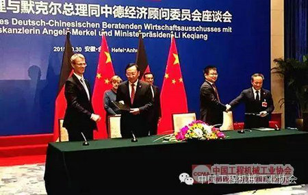 10月30日下午,国务院总理李克强和在华访问的德国总理默克尔在合肥香格里拉大酒店,共同见证了中德经贸合作项目签约仪式,徐工集团董事长王民与德国思爱普软件系统有限公司(简称“SAP”)全球副总裁、大中华区总经理李强代表双方签署了战略合作协议。签约仪式前举行了中德经济顾问委员会第二次会议和两国总理座谈会,徐工集团董事长王民作为中国重点企业代表,应邀出席会议并作了专题发言。