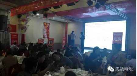 天能集团小电驴商城经理刘涛向大家介绍线上订货给大家带来的好处和具体操作方法,并宣布当天订货的促销政策。现场嘉宾踊跃参与,积极订购产品。