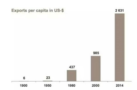 ▲ 各国人均出口额(单位/美元)