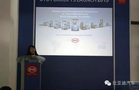 在会上,比亚迪新加坡业务负责人介绍了比亚迪纯电动叉车的先进技术,以及比亚迪今后在新加坡市场的发展计划。她表示:“比亚迪纯电动叉车不仅零排放、无污染,而且能耗费用比现在市面上的叉车大幅降低,将为客户节约非常可观的成本;未来,比亚迪将考虑在新加坡继续扩大新能源车产品阵营,协助新加坡实现城市道路运输的完全电动化。”