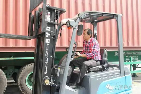 新加坡知名代理商代表在试驾比亚迪纯电动叉车