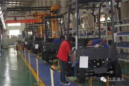 比亚迪叉车事业部现下设电动叉车韶关工厂、液压产品工厂两个生产工厂,主要负责生产比亚迪电动叉车系列以及配套液压产品,其中目前开发投产的电动叉车系列包括电动平衡重式系列叉车、电动托盘式叉车、电动前移式叉车、电动堆高式叉车以及电动牵引车等。如今第十八事业部拥有完整的叉车整车生产线,包括4条机加、焊接线,1条涂装线及3条总装生产线,实现年均产能3万台。