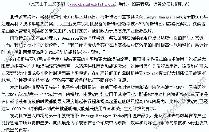 海斯特公司凭借PSI海斯特®变功率技术™荣获年度产品