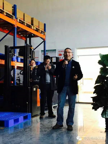 首先,何总对中力江苏分公司新址开业表示了祝贺。何总和大家分享了过去一年中中力的成绩。2015年叉车行业整个行势下降了20%,但是江苏中力逆流而上,同比去年增长了30%。今年浙江中力实现了大幅度增长,是2015年行业中为数不多能够在整个行业逆境中保持稳定快速增长的企业之一。中力的平稳快速成长离不开各位代理商、合作伙伴的大力支持。何总对辛勤支持中力的各位伙伴表示衷心的感谢!最后何总向大家介绍了中力2016年新品的特点与亮点。