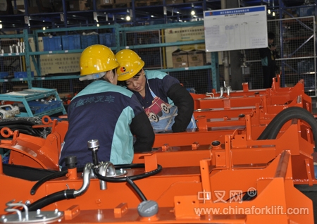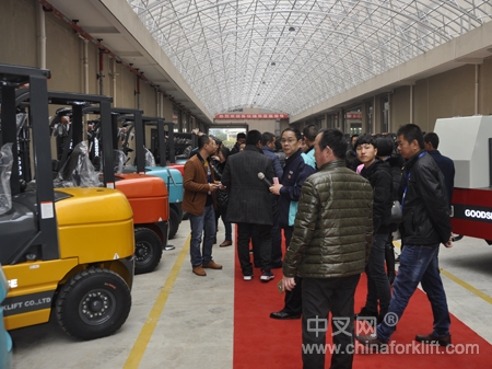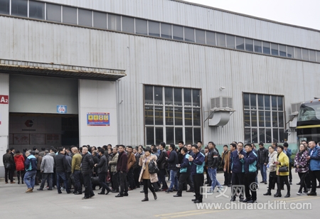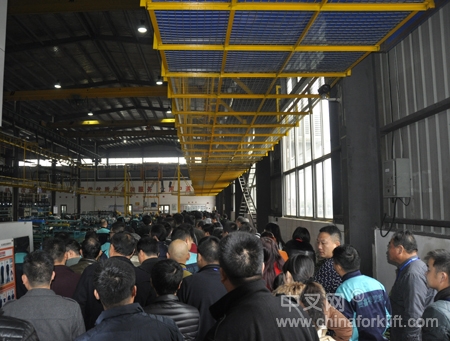 20日上午,全国经销商代表在吉鑫祥相关领导的陪同下参观其在台州工厂。陪同人员向来宾详细解说了每个工段的工艺流程,精益化管理,每一台叉车都经过严格的试验检查,保证了每一台出厂的产品都合格。
