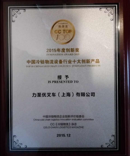 2015年12月11日上午,「Cold Chain 2015国际冷链物流展」在上海新国际博览中心盛大开幕。同期由中国冷链物流产业创新联盟、CC《冷链物流》杂志发起主办,联合冷链物流网、舒适系统网共同举办的“2015中国冷链物流设备行业十大创新产品”颁奖典礼也隆重揭晓。力至优叉车(上海)有限公司作为冷链物流设备行业10家优秀企业之一获此殊荣。