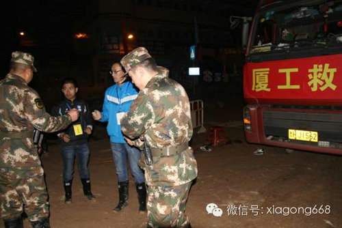 在现场忙碌的大批设备中,厦工身披“武警红”的推土机和挖掘机显得特别显眼,它们配合默契,作业效率高,尤其是厦工的XG848EL挖掘机,给大家留下了深刻的印象。按照部队同志们的话说,“指哪打哪,一个字好”。而现场厦工服务人员的配合跟进也给救援指挥部留下了很深刻的印象:每天二十四小时轮班随时待命,解决可能出现故障情况的后顾之忧;易损件等配件连夜补充送达,确保救援进度不耽搁一分钟;一遇到需要协助解决的问题,无条件服从,第一时间给予圆满解决。