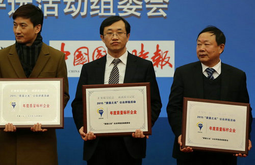 12月28日,由中国质检报刊社主办的年度质量“大戏”——2015“质量之光”年度质量盛典在人民大会堂举行。在这场被誉为中国质量界“奥斯卡”的评选中,天能集团凭借过硬的产品质量和创新能力,荣获“年度质量标杆企业”称号,并成为获奖企业中唯一来自新能源行业的公司。