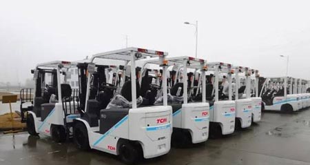 TCM品牌叉车物流装备一直深受中国国际机场浦东机场的赞誉与信赖,纳入UC品牌体系的TCM以其优质卓越的服务与浦东机场再次坚固了友好合作之约。此次浦东机场首次向优嘉力(安徽)大批量订购同一规格的电瓶叉车,浦东机场对于这次交付的FB-7N叉车表示十分满意。