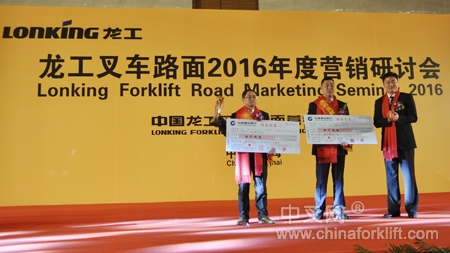 随后,谢英华总经理宣布了2015年度获得叉车销售.服务.诚信AAA经销代理单位的卓越奖、一等奖、二等奖、三等奖、优秀奖表彰名单,及获得年度新秀、增速、杰出贡献单位的一等奖、二等奖、三等奖表彰名单。随后,龙工集团各公司高层对获得奖项的公司进行了颁奖仪式。