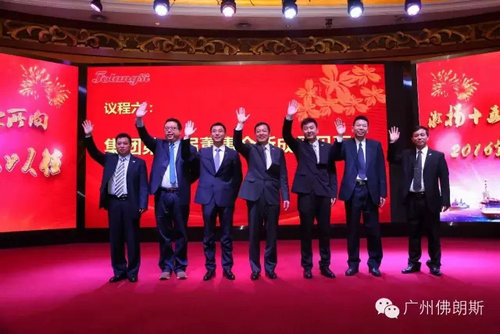 行政中心总监侯泽燕宣读了相关干部任免决定,随后董事长颁发了集团两位新任副总聘书。在全体参会人员的共同见证下,集团第一届董事会新成员暨集团第三届经委会新成员上台和大家见面。与此同时,投资方代表及合作方代表也为我们送上2016年祝福,并表达了与佛朗斯集团携手走向美好未来的憧憬。