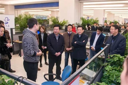 中共长沙市委副书记、市长胡衡华等领导在创业咖啡吧交谈
