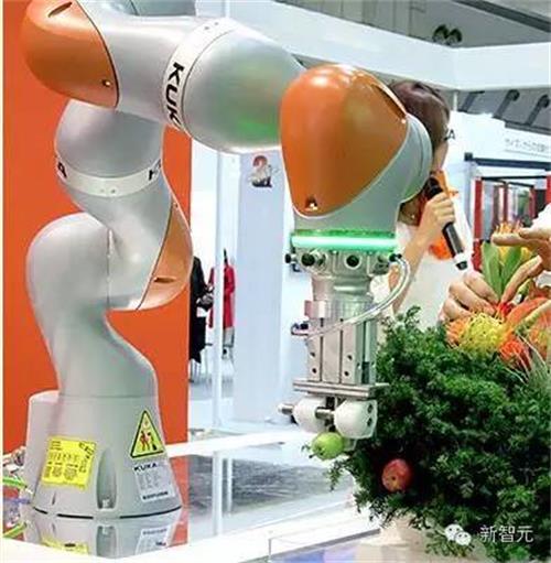 在一次国际展览中机器人帮助一个插花者插花
