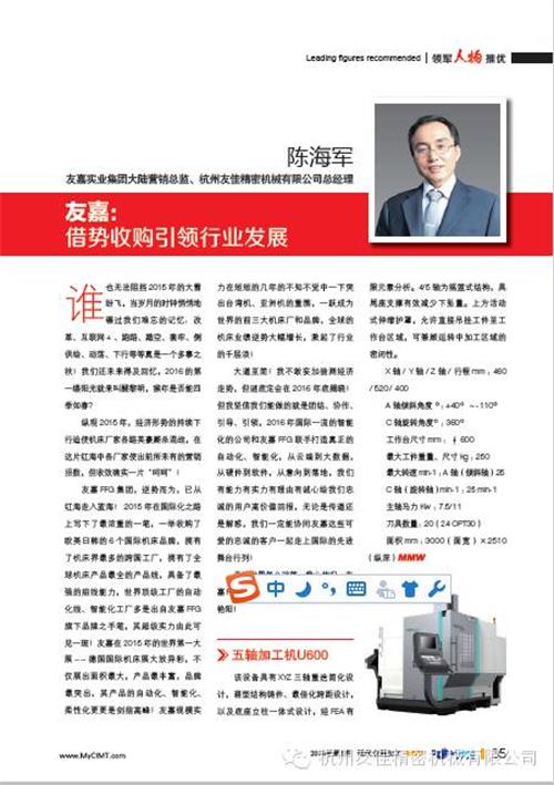 友嘉FFG集团,逆势而为,已从红海走入蓝海! 2015年在国际化之路上写下了最浓重的一笔,一举收购了欧美日韩的6个国际机床品牌,拥有了机床界最多的跨国工厂,拥有了全球机床产品最全的产品线,具备了最强的组线能力,世界顶级工厂的自动化线、智能化工厂多是出自友嘉FFG旗下品牌之手笔,其超级实力由此可见一斑!友嘉在2015年的世界第一大展----德国国际机床展大放异彩,不仅展出面积最大,产品最丰富,品牌最突出,其产品的自动化、智能化、柔性化更更是剑指高峰!友嘉规模实力在短短的几年的不知不觉中一下突出台湾机、亚洲机的重围,一跃成为世界的前三大机床厂和品牌,全球的机床业绩逆势大幅增长,激起了行业的千层浪!