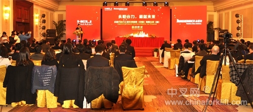 1月25日下午15:00,安徽叉车集团有限责任公司与永恒力集团在上海兴国丽笙酒店联合召开了中德合资工业车辆租赁公司的签约仪式及新闻发布会。这是2016年初中国工业车辆行业的重磅消息,由此正式揭开了全球排名第八、国产叉车老大与全球排名第三的工业车辆制造商之间的两大巨头合作。