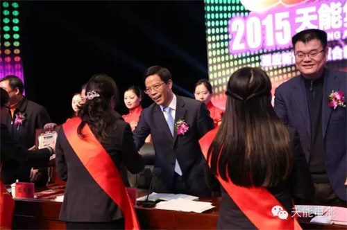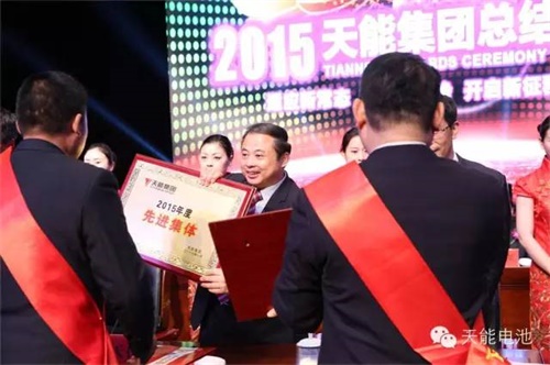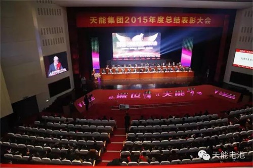 最后天能集团董事长张天任在现场发表了2015年度天能集团总结表彰大会上的报告,董事长讲到2015年天能集团综合实力大幅提升,天能从2010年的第125名跃升至2015年的第32位,连续五年排名行业第一。2015年工作任务的胜利完成,也标志着“十二五”规划目标的圆满收官。2016年,是“十三五”规划的开局之年,是天能深化变革、二次腾飞的关键之年,也是天能创业30周年华诞的喜庆之年。新的一年,天能将顺应新常态,聚合新优势,开启新征程,再铸新辉煌,为实现二次腾飞天能梦而努力奋斗!
