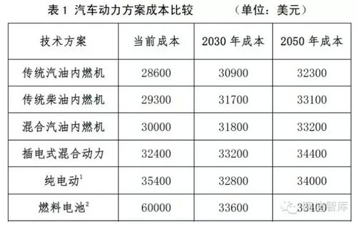 降低成本是发展氢燃料汽车的关键。从表2可以看出燃料电池系统的高成本增加了整个汽车的成本,未来的主攻方向是如何在减小成本的同时延长使用寿命。降低燃料电池系统的成本从理论上讲是可行的,并且很大程度上决定了整个汽车的成本。但是高压罐的成本却很难下降,因为高压罐的成本很大程度上取决于昂贵的复合材料,所以目前的研发重点集中在降低高压罐的复合材料成本。电池和电力控制系统的成本随着技术的进步都会有一定的下降,因为材料的限制不会下降得太多,但是高技术的融入会延长电池使用寿命,从而提高整个汽车的使用性能。