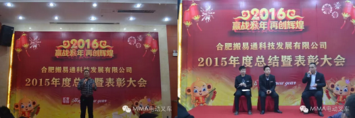 年会对于MiMA(米玛)电动叉车2015年度优秀员工、质量标兵、特别贡献员工进行了表彰,他们是我们每位员工学习的榜样,是每个搬易通人追逐的排头兵。