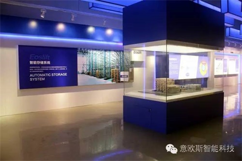 意欧斯智能仓储展厅占地600平方米,设计集合了声、光、电元素,现代感十足,尽显意欧斯智能科技魅力。在参观的过程中,来宾们能体验到强烈的科技代入感。