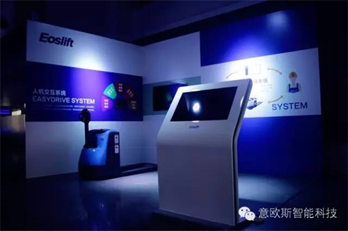 意欧斯极具竞争力的产品---智能电动搬运车也在展厅展出。意欧斯智能叉车上安装有车载电脑,内置人机互动系统。驾驶员刷卡启动车辆,通过这个液晶显示屏查看车辆的状态,例如行驶速度、电池电量等。车辆在线管理系统实现了互联网+叉车的概念。管理员在办公室的电脑上可以查看驾驶员和车辆的信息,比如驾驶员的工作状态,车辆的故障,电池保养等等。