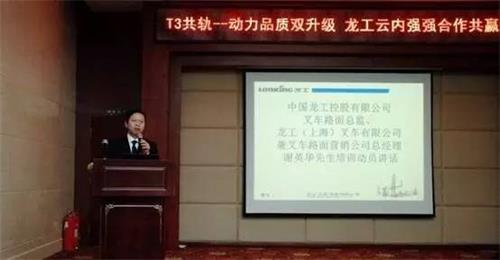 近日,由昆明云内动力股份有限公司客户服务公司组织,中国龙工控股有限公司协办的 “云内T3高压共轨技术培训会”在山东青州召开,中国龙工控股有限公司叉车路面总监、龙工(上海)叉车有限公司兼叉车路面营销公司总经理谢英华先生,山东云内动力有限责任公司董事长季俊先生,总经理李钧先生及龙工一二级经销商等300余人参加了此次培训大会。