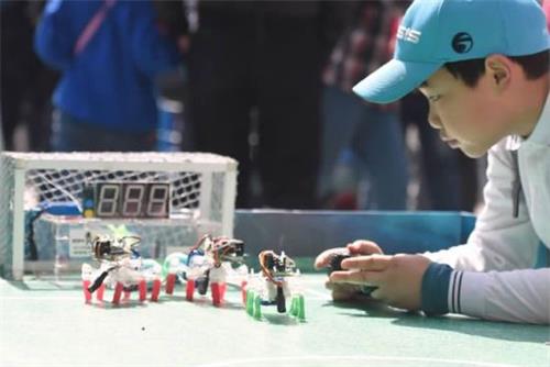 3月28日,小学生在观看机器人表演。当天,为期1个月的“湖南10万中小学生科普大行动——对话机器人”主题活动在长沙世界之窗启动。上百种机器人汇聚于此参加趣味赛事,展示它们的拿手绝技,让参观学习的各地中小学生增长知识,大开眼界。