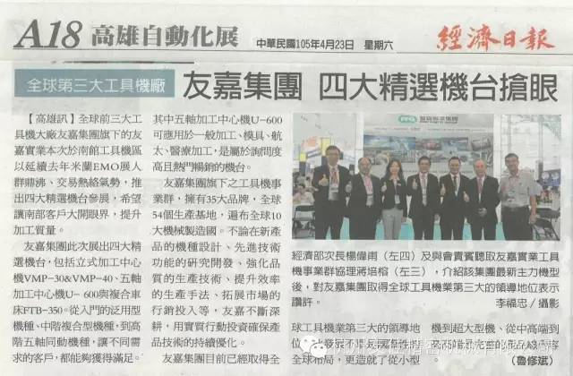 友嘉集团目前已经取得全球工具机业第三大的领导地位,此发展不单是国际性的全球布局,更造就了从小型机到超大型机,从中高端到高高端最完整的产品线内容。
