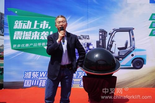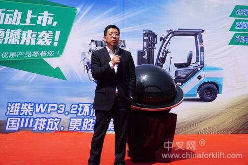 凯傲宝骊叉车(江苏)有限公司总经理王桂海先生在致辞中表示:“时值国二切换国三之际,国家对环境推出更高的要求。宝骊与潍柴建立了良好的合作关系,非道路机械全面实行国三排放标准后,污染明显变少。宝骊搭载的潍柴发动机使用的是3.2升排量,相比传统2.7升排量,动力性更足、更省油、马力强劲。希望通过这次活动,将我们凯傲宝骊最好的产品和服务带给客户,并祝愿此次物流节取得圆满成功。”