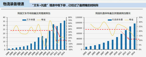 1、叉车市场和托盘市场从2010年后增速经历换挡期,增速中枢下滑明显。属于“叉车+托盘”的时代过去了