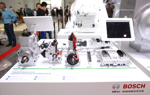 本次展出的高压共轨系统秉承了博世一贯对燃油效率和清洁排放的不懈追求。经济型共轨系统CRS1-18喷射压力达1800巴,适用于乘用车、轻型商用车及微型客车。其内部加载的所有部件均根据中国市场需求量身打造,在满足国五排放标准的同时,提高了发动机的输出功率。适用于乘用车及轻型商用车的尾气后处理系统Denox5可以根据发动机工作状态喷射尿素水溶液,并在催化转化器内将氮氧化物还原为水和氮气,从而助力汽车的排放水平可满足欧VI排放标准。