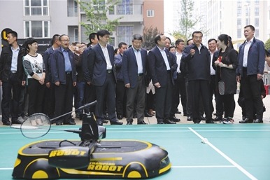 李克强还在菁蓉创客小镇与创业者交流。总理应邀与创业团队设计的羽毛球机器人“切磋”球技。 据中国政府网