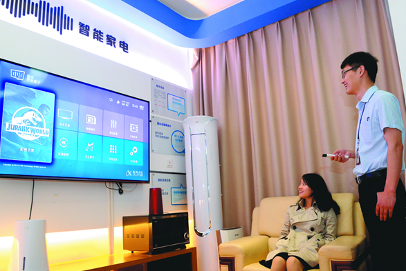 客商正在体验讯飞智慧家电。记者杨竹摄