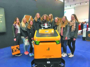 开展两日,嘉腾公司副总裁陈洪波掩饰不住内心的兴奋。作为11家参展的佛企之一,嘉腾这家顺德区内的明星机器人企业首次参展汉诺威。在汉诺威工业展核心展区的17号展馆,嘉腾隔壁就是机器人界“四大家族”之一的川崎,两家机器人企业可谓“同台竞技”。