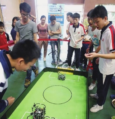 停球,摆脱防守,射门,机器人居然有着像足球运动员般身手!昨日,第十四届禅城区中小学生机器人竞赛在佛科院附属学校拉开战幕,各中小学校的机器人爱好者纷纷“大显身手”,展现禅城学子的创新和动手能力。