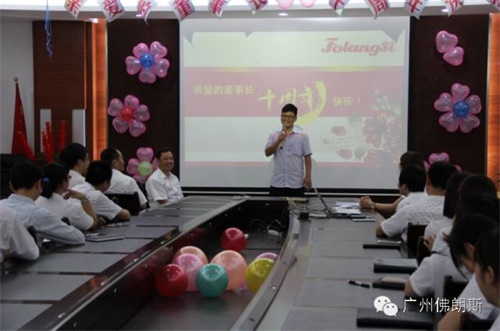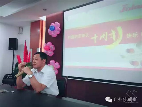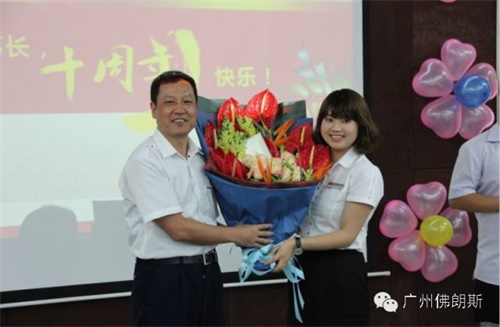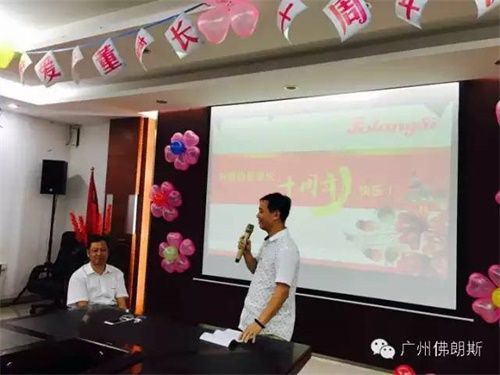 集团副总经理周利民先生代表全体集团员工为董事长送上最真挚的祝贺与祝愿。“回想起董事长与大家一起创业的艰辛道路,不觉欣慰。十年风雨无阻、十年艰难险阻、十年发展之路,董事长为我们,为佛朗斯付出了太多太多。”