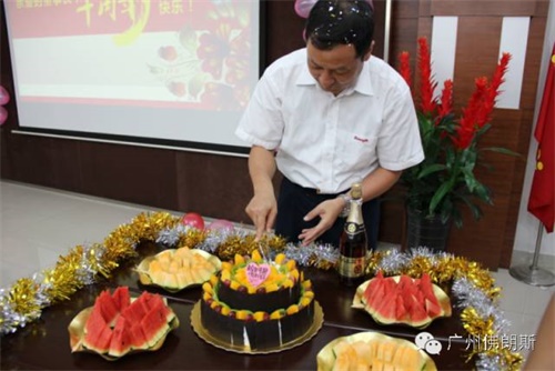 在集团干部的共同见证之下,大家一起吹蜡烛、切蛋糕、开香槟、送祝福。见证了董事长十年来的不易与伟大。