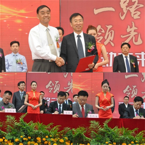 随后,在全体的嘉宾见证下,松滋市委副书记朱红平先生邀请了韩国SMC株式会社代表、经销商代表、重点客户代表上台与湖北先行专用汽车有限公司董事长肖顺美先生、总经理刘波先生,分别签订了汽车零配件供应协议、合作经销商加盟协议、重点客户合作协议。