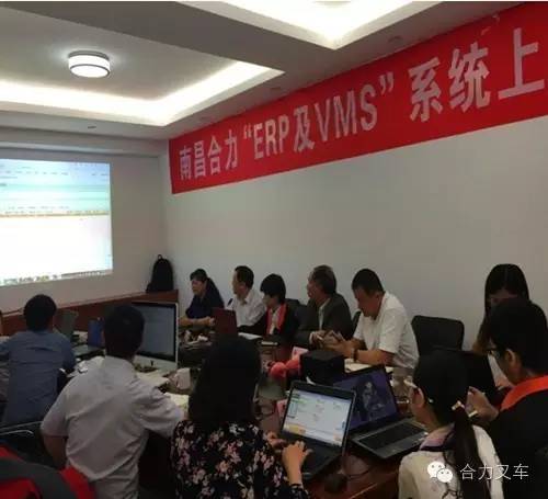 2016年5月11日上午8:58安徽合力股份有限公司张孟青总经济师、安徽合力股份有限公司营销总部副总经理李浩、项目组成员及南昌合力各地区销售经理,共同参加了南昌合力“ERP及VMS”系统上线仪式。