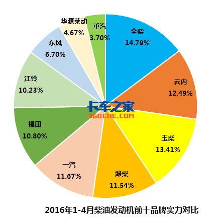 4月份柴油机市场前十名市场占有率合计为83.85%