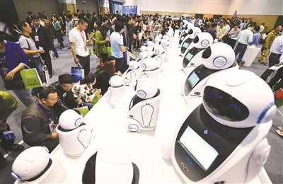 18日,第十一届中国常州先进制造技术成果展示洽谈会开幕。来自欧洲科学院、美国文理科学院、瑞典皇家工程科学院、英国剑桥大学以及北京大学等机构的500多名中外专家汇集常州,与企业界开展产业对接。筹备期间,常州征集到最新科技成果1000多项。开幕式上,46个重点项目集中签约,合同总金额超过370亿元。图为能歌善舞的“优弟”亲子机器人受到观众热捧。