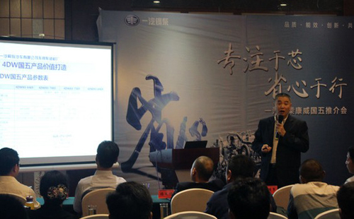 会议主要由一汽锡柴宣传片播放、康威国五产品优势介绍、用户互动交流和现场订车等环节组成,一汽锡柴销售总监吴明军先生分别对锡柴企业概况、一汽锡柴康威国五产品优势和一汽锡柴服务优势做了详细的介绍,并在介绍的过程中通过形象比喻的运用,得到了凯马整车厂、经销商以及广大用户的高度认可。