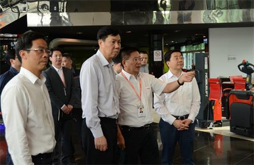 随后,钱巨炎厅长一行又实地视察了公司三期工厂,近距离接触了公司的产品和产品线。常务副总经理刘云华向其介绍了目前总投资达5亿元的22000台智能型电动工业车辆及技术研发中心项目正在加快推进建设,全部达产后可实现销售收入20亿元,这将进一步带动诺力机械向世界级仓储物流设备创新者与服务提供商前进。钱厅长对诺力这一全力推动AGV自动导引技术产业化的战略选择表示赞许,期待该项目早日竣工,并指出诺力一定要积极发挥标杆作用,不断创新思路、积极拓展品牌建设渠道,早日实现“只要有物料搬运,就有诺力”的企业愿景。公司领导表示一定不辜负钱厅长的期望,将全力推进公司发展,为工程机械行业的发展再谋新篇。