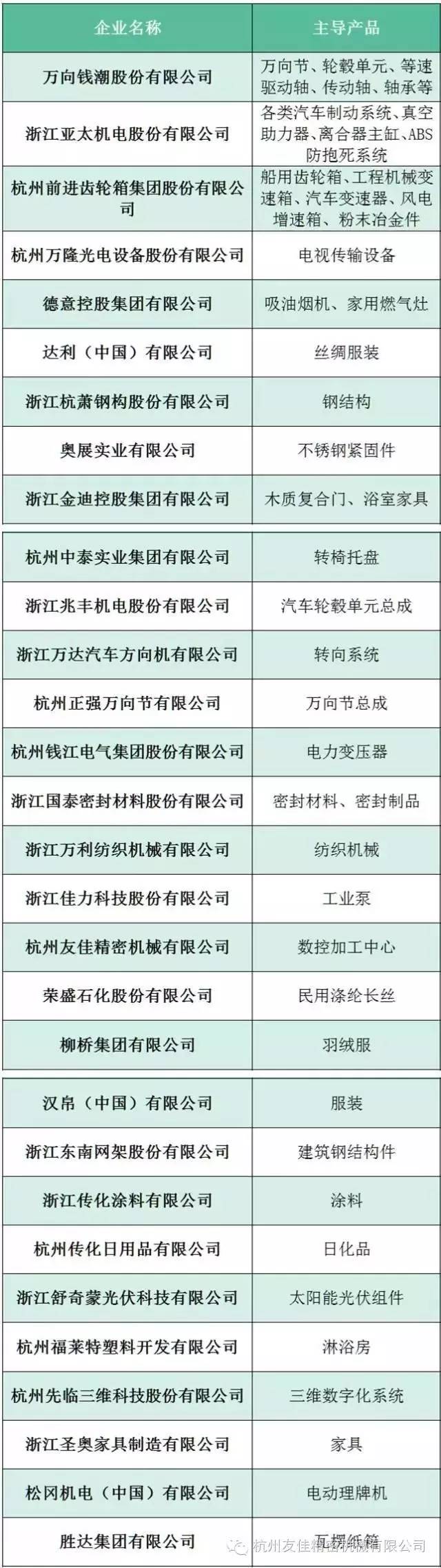 浙江制造品牌是浙江制造业先进水平的象征,综合体现浙江企业和产品形象,定位高标准,高品质。杭州有130家企业入选2016年“浙江制造“品牌重点培育企业。具体来说,萧山区30家,杭州大江东产业集聚区4家,上城区3家,下城区3家,江干区1家,拱墅区5家,西湖区4家,滨江区8家,杭州经济技术开发区7家,余杭区24家,富阳区23家,桐庐县2家,淳安县2家,建德市8家,临安市6家。