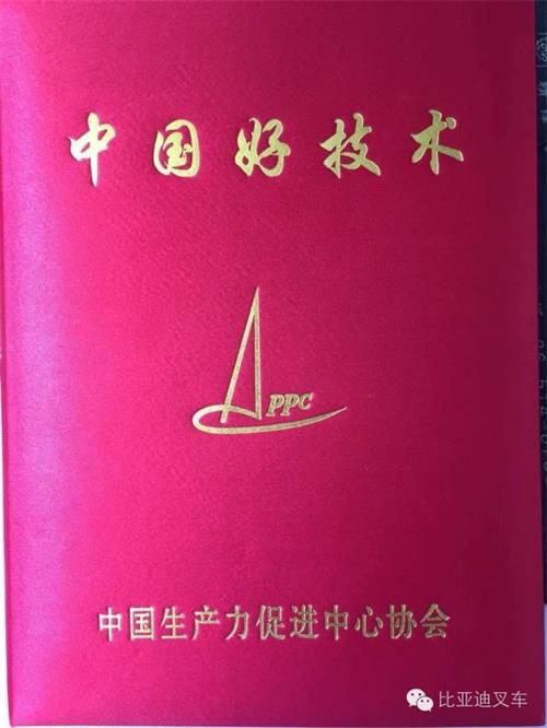 近日,由中国生产力促进中心协会主办,德阳市委、市政府协办的“德阳杯”2016年中国好技术、生产力促进奖颁奖大会暨中国生产力发展研讨会在四川省德阳市旌湖国际酒店隆重召开。会议对2015年度生产力促进奖获奖单位和个人,2014、2015年度“中国好技术”项目进行颁奖。比亚迪叉车凭借先进的铁电池技术以及其环保、经济、便捷等优势,荣获2014年度“中国好技术”荣誉称号。