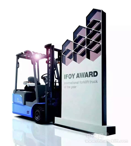 2016国际叉车年度大奖International Forklift Truck of the Year(IFOY)3.5吨以下级平衡重式叉车大奖最终获得者是来自中国的比亚迪三支点ECB18C型号的平衡重式叉车,以超凡的性能和技术获此殊荣,成为中国首家获此奖项的叉车企业。