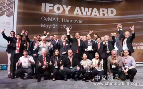 在展会开幕式上公布了评选出IFOY 2016国际叉车大奖卓越厂商及解决方案。IFOY是国际著名专业设计大奖,旨在鼓励和促进在欧洲市场上的叉车厂商在设计研发叉车产品及技术方面的贡献,本次由德国VDMA协会、CEMAT和来自行业内专家组成的评审团从13个叉车和解决方案候选提名中评选产生。首次入围的比亚迪三支点ECB18C叉车囊获3.5吨以下级平衡重式叉车大奖。